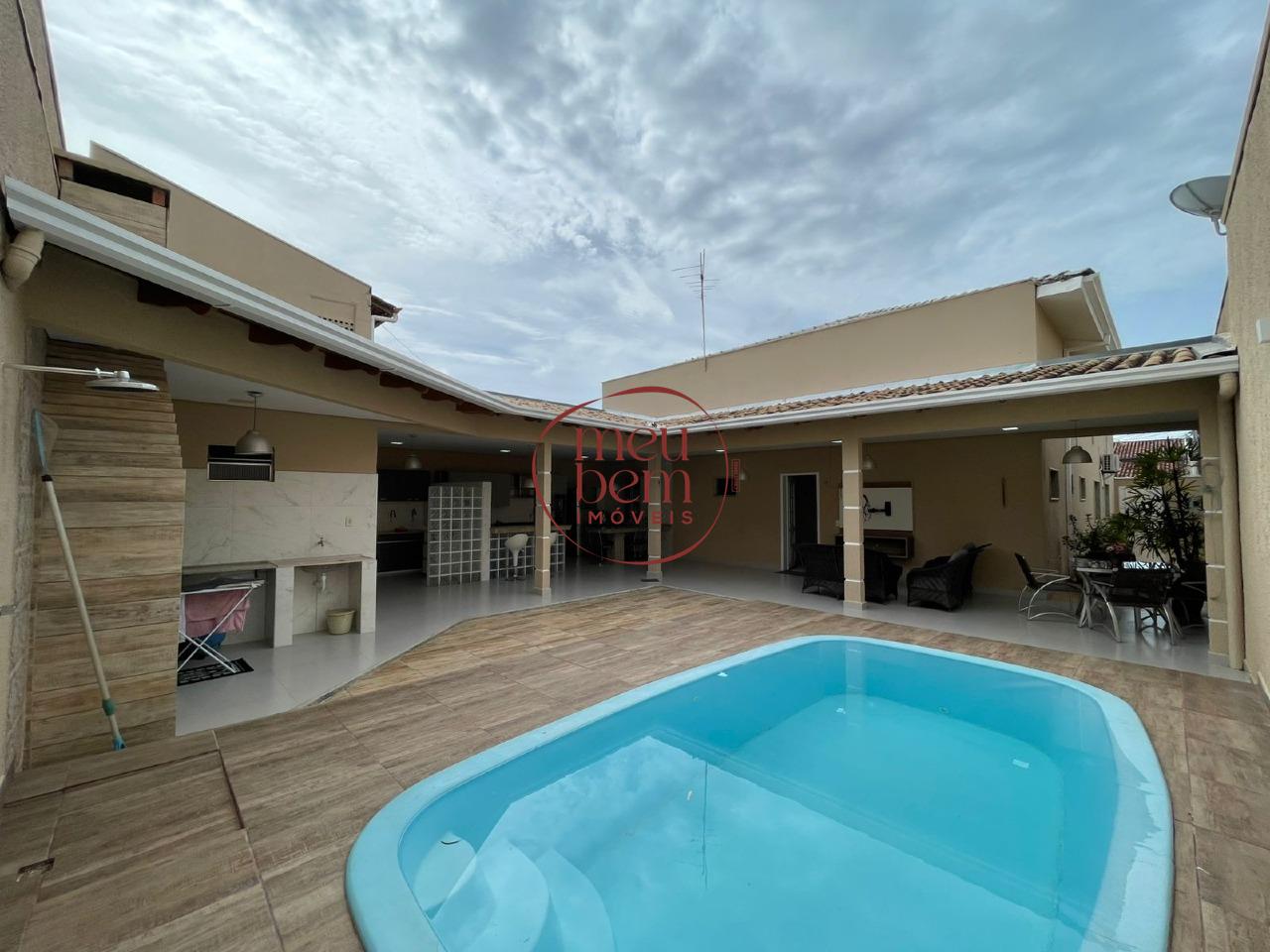 Neste condomínio disponibilizamos a venda uma excelente casa, toda no porcelanato, com 3 suítes, sendo 1 com amplo closet, 2 salas, 1 escritório, lavabo, 1 cozinha interna, 1 cozinha externa, garagem coberta, área de serviço, edícula com banheiro externo com 1 quarto, e ainda tem piscina e churrasqueira.