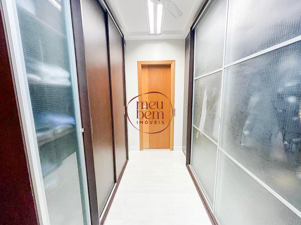O 1º piso conta com 2 dormitórios, 1 banheiro, 1 suíte (sendo gran-máster com antessala/escritório, closet e no banheiro, bancada dupla estilo Sr. e Sra., banheira).